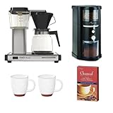 Technivorm Moccamaster 9506 Thermal K-741 AO (2012 Model) Coffee Brewer With Glass Decanter in Brushed Matte Silver + Capresso Burr Grinder + 2 Bistro Coffee Cups + Cleancaf Coffee Machine Cleaner and Descaler